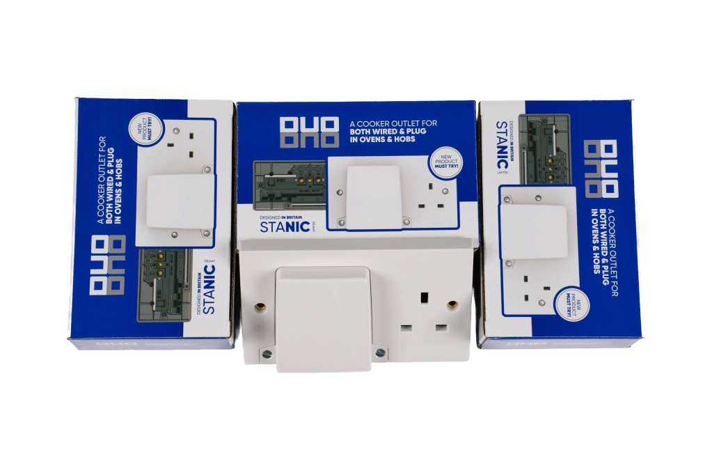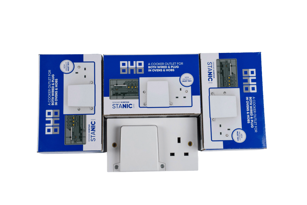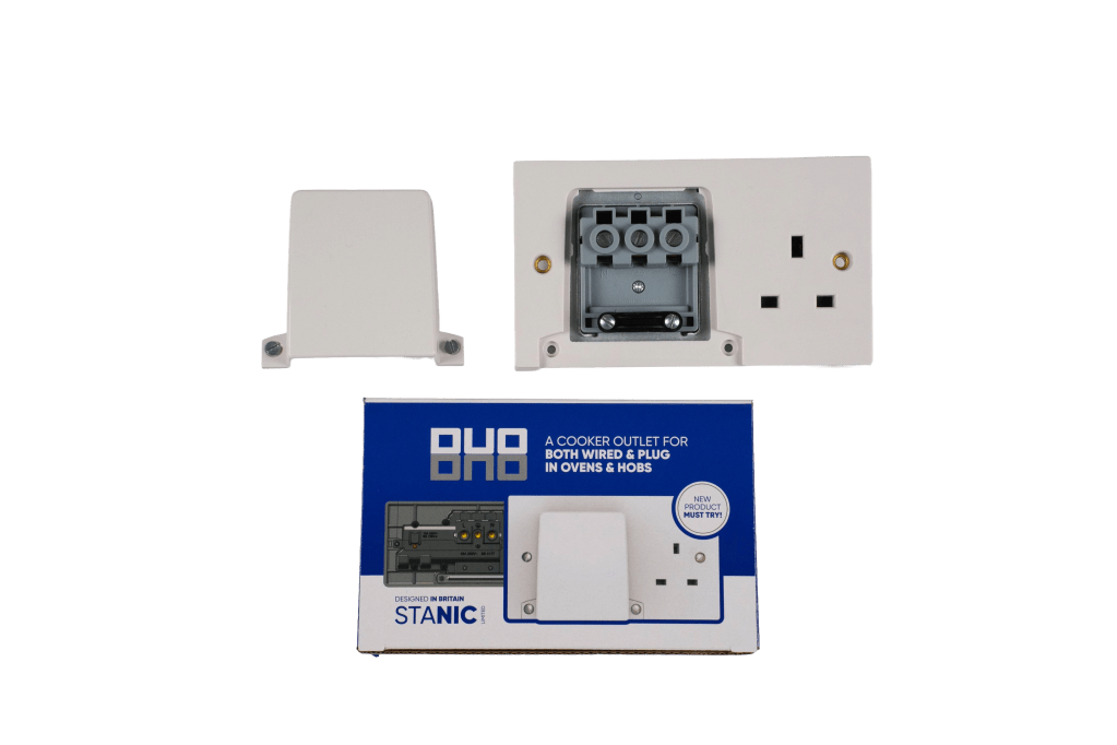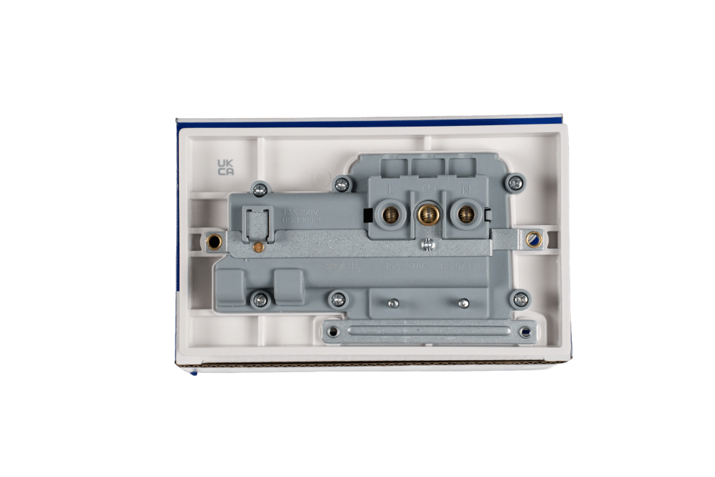A combined 45A cooker outlet and 13A socket designed to simplify installations.